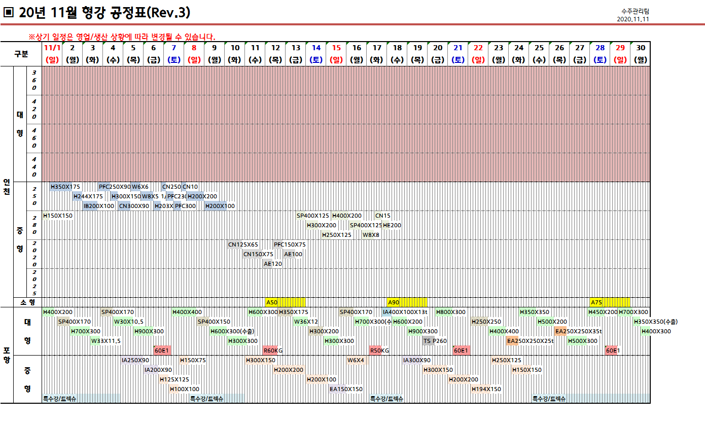 2020년11월 현대제철 생산스케줄(2020년11월11일기준) 작성자 관리자 작성일 2020-11-12 14:32 조회 2999 2020년11월11일기준 변경 스케줄입니다. 좋아요 1 싫어요 0 인쇄 2020년11월현대제철생산스케줄.png « 2020년11월12일 철강사재고현황 2020년11월13일 철강사재고현황 » 목록보기 답글쓰기 Powered by KBoard